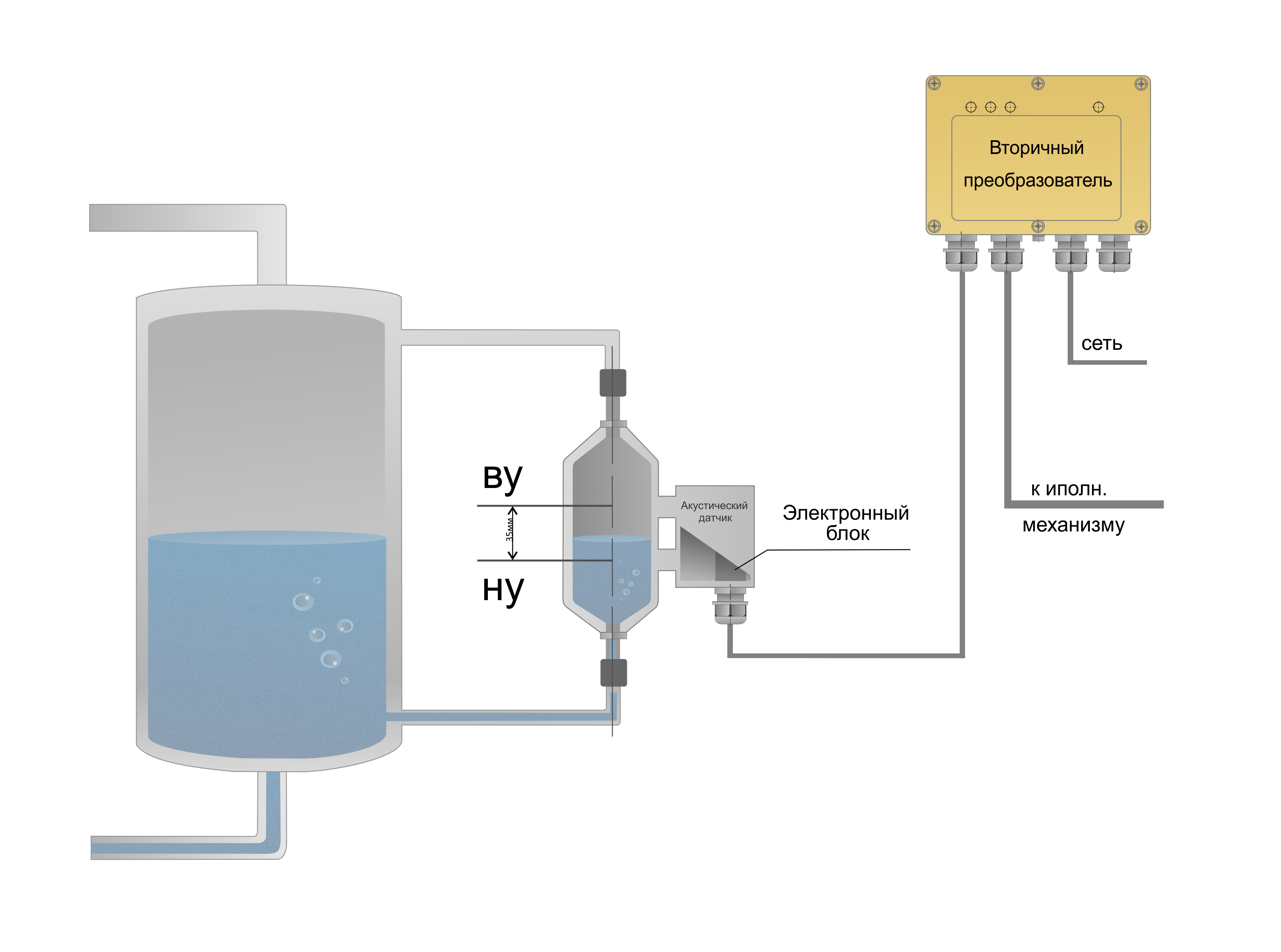 Выходной сигнал вторичного преобразователя — релейный;